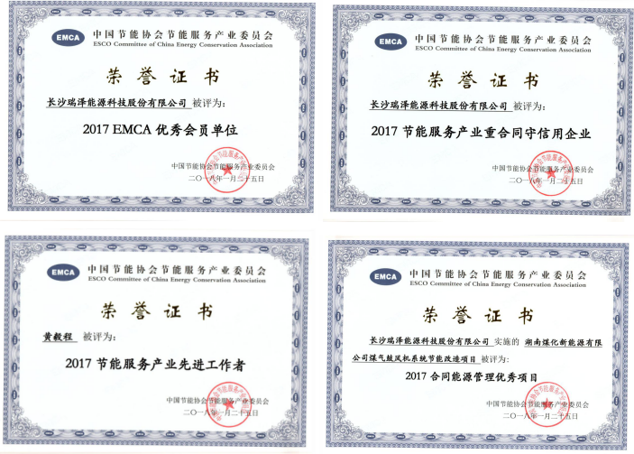 會(huì )上,瑞澤能源再次榮獲“2017年度重合同守信用企業(yè)”“EMCA優(yōu)秀會(huì )員單位”和“2017合同能源管理優(yōu)秀示范項目。公司技術(shù)總監榮獲“2017年度節能服務(wù)產(chǎn)業(yè)先進(jìn)工作者稱(chēng)號”。
